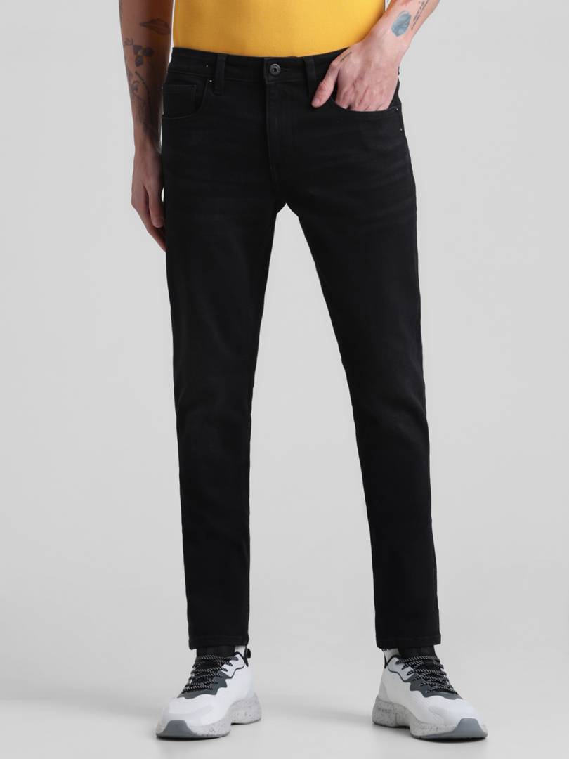 Jack & Jones Men Solid 68%Cotton 30% Polyester 2%Elastane Regular Fit Black Jeans