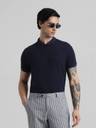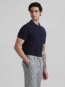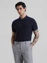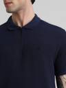 JACK & JONES Self Design Men Polo Neck Dark Blue T-Shirt