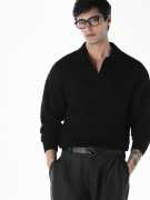 JACK & JONES Solid Collared Neck Casual Men Grey Sweater