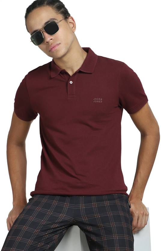JACK & JONES Solid Men Polo Neck Maroon T-Shirt