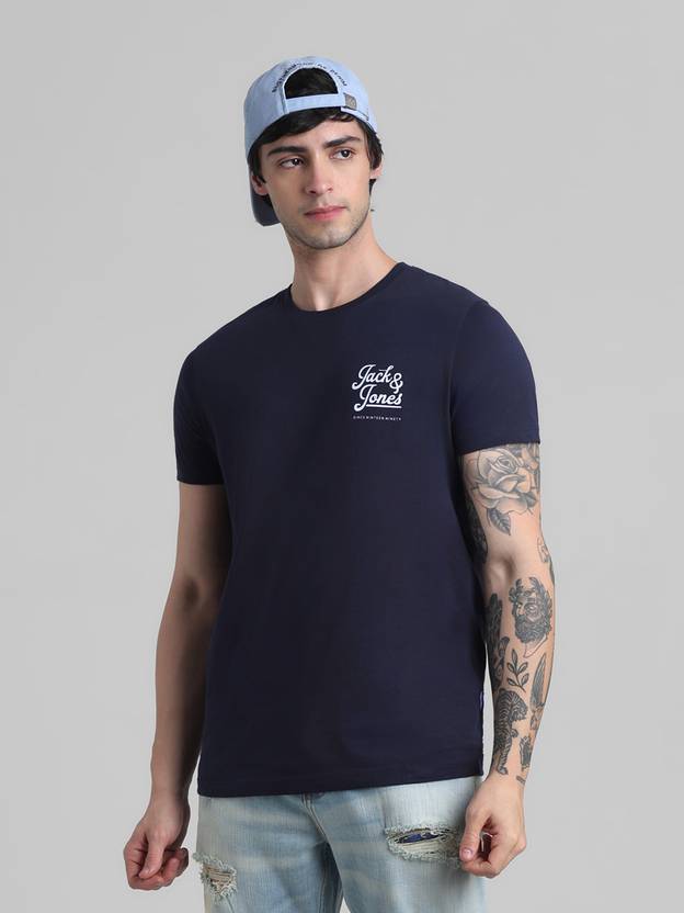 JACK & JONES Solid Men Round Neck Dark Blue T-Shirt