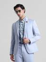 Men Solid Single Breasted Casual Blazer (Light Blue)