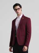 JACK & JONES Solid Single Breasted Casual Men Blazer (Maroon)