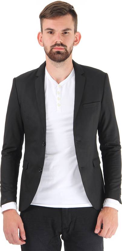 JACK & JONES Solid Single Breasted Casual Men Blazer (Black)