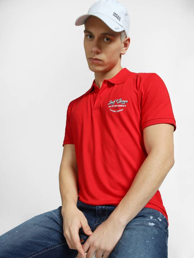 JACK & JONES Typography Men Polo Neck Red T-Shirt