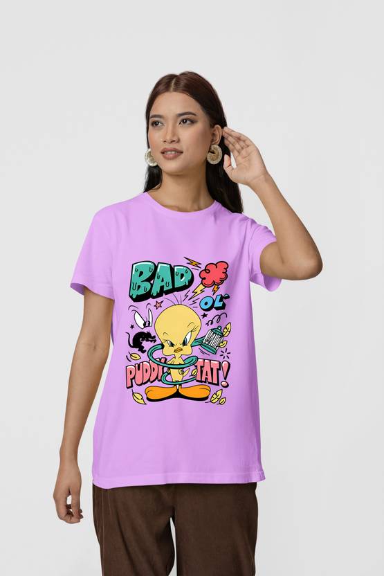 Jack Paris Women Printed Round Neck Cotton Blend Purple T-Shirt