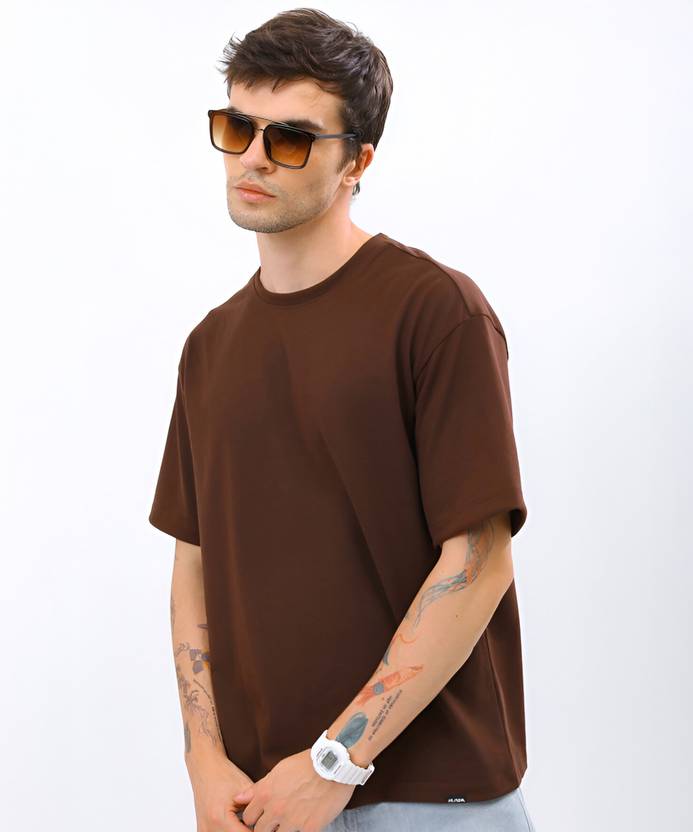 Jack Paris Men Solid Round Neck Cotton Blend Brown T-Shirt