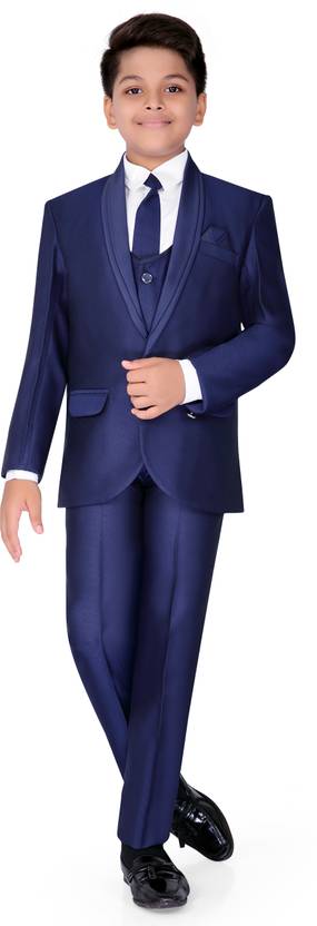 JACKJO Boy's 5-Pcs Coat Suit Set of Festive and Party ready look to your boy, Buying him this 5-pcs Coat Suit Checks Set from JACKJO made from 100% Polyester Blend. This is a perfect choice for your boy. The fabrics of our suits are made with the finest high quality Blended Polyester that is soft and smooth. We understand the importance of comfort, our suits were made and designed for kids. Pant has half elastic on the back side which ensures it fits to the little and delicate waist of your child. The fabric of this piece is a perfect choice that has both the breathability and durability. The fabric of white shirt is of premium quality and its made up of 100% White Polyester fabric . Jacket & Waistcoat ,Pant & Tie is made from 100% Navy Blue Polyester fabric and it ensures a skin friendly feel. Jacket has shawl collar.