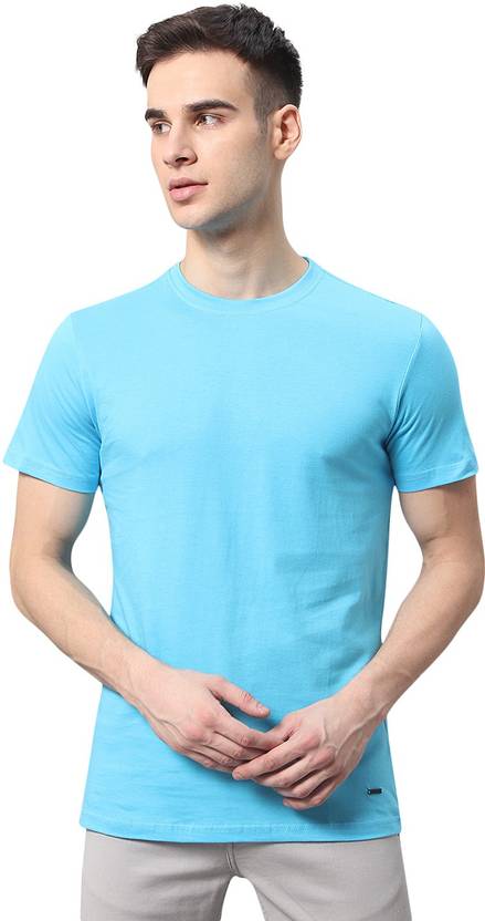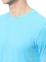 Jade Blue Men Solid Round Neck Pure Cotton Blue T-Shirt