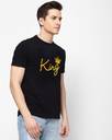 JAEDE Men Printed, Typography Round Neck Cotton Blend Black T-Shirt