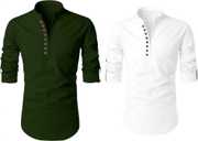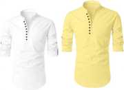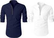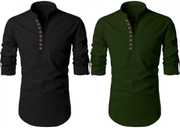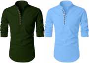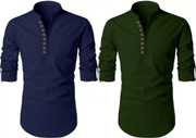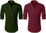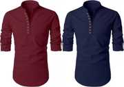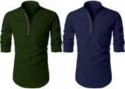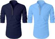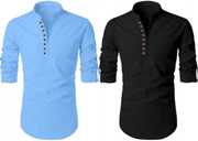 Upgrade your ethnic wardrobe with this stylish Combo of 2 Round Neck Cotton Blend Short Kurtas for men. Designed with comfort and versatility in mind, these kurtas are crafted from a soft cotton blend that is breathable and easy to maintain. The short kurta style pairs effortlessly with jeans, chinos, or traditional pyjamas, making it perfect for casual gatherings, festive occasions, or everyday wear. The round neck design adds a modern touch to the traditional silhouette, giving you a relaxed yet polished look.