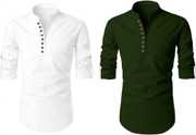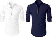 Men's Combo of 2 Round Neck Cotton Blend Short Kurta