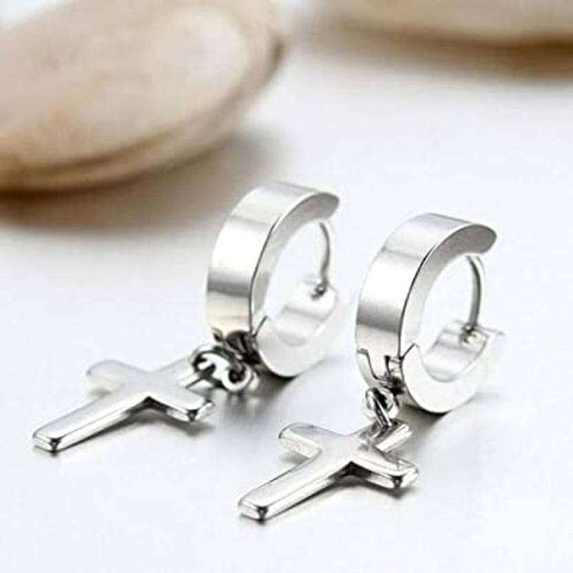 Men Earrings Christmas Gift Piercing Jesus Cross Stylish Silver Color Boys. Hoop Earrings Casual/Party Wear Avoid Water Wash Measures.Made from great material, these jewellery are durable and skin friendly. Give this quality fashion jewellery as a sweet and sentimental special gift to a loved one to commemorate a meaningful journey or use it as a beautiful personal piece that would complement your style.