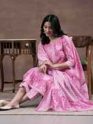 Featuring a charming printed pattern, this women’s kurta, pants and dupatta set blend tradition with a contemporary touch. The prints are thoughtfully arranged to enhance the overall appeal, making this outfit ideal for casual outings, festive gatherings, or special events. Thus, the design can add a layer of grace, elevating your ensemble effortlessly.