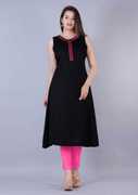 teena fashion Women Embroidered A-line Kurta (Black)