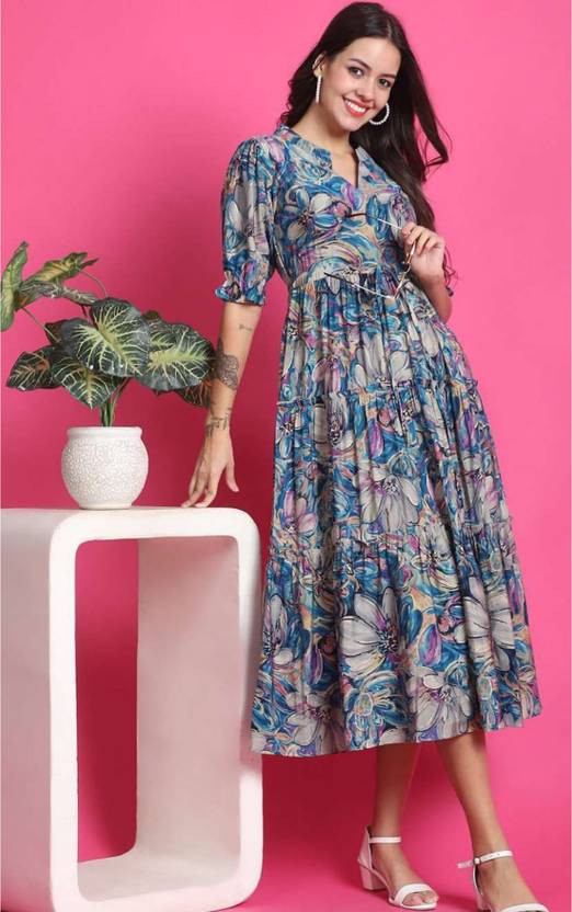 jaiambycreation Women A-line Blue Ankle Length Dress