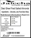 All time favourite salted almonds fried in Pure Ghee for your loved ones. Net Weight: 200 gms. Contains Oxygen absorber pouch to retain its freshness and an extended shelflife. Packed in 100 percent Bio- Degradable Zip Lock Paper Pouches.• BUY WITH CONFIDENCE - Ghasitaram’s name has been synonymous with good eating for more than 100 years that they have been operational. A great deal of time and effort has been spent by them in researching and developing Sweets and cuisines, from the corners of India. Encouragement within the family provided them to seek ancient recipes gleaned from classical manuscripts and also to innovating with unusual combinations.• LARGEST - We lead in Gifting and Concepts for all occasions from the Choice of Corporate or Wedding gifts to even Food with signature items and dishes. We deliver Pan World Gifts, Mithais, Chocolates, Mangoes, Dry Fruits, so be it for Diwali, Dussera, Rakshabandan, Ganpati, Holi, Christmas, New Year, Mothers Day, Fathers Day, Valentines or any Day we have gifts and Solutions for all day.