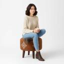 Jaico Solid Wood Pouf (Finish Color - Camel, Pre Assembled)
