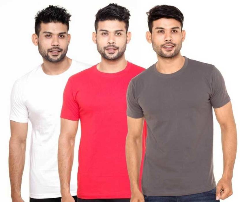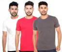 Pack of 3 Men Solid Round Neck Pure Cotton White, Pink, Grey T-Shirt