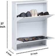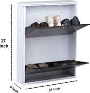 Jaimini White Brown Shoe Rack with Lock & Key (Wall-Mount Do It by Yourself) Metal Shoe Rack (White-Brown, 2 Shelves, DIY(Do-It-Yourself))