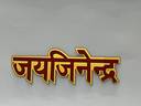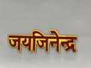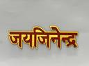 Red Jai Jinendra Sticker with Golden Background Size 3 inches height by 9 inches width Back side adhesive Can be used on Doors, Main Gate, Entrance, Walls, etc