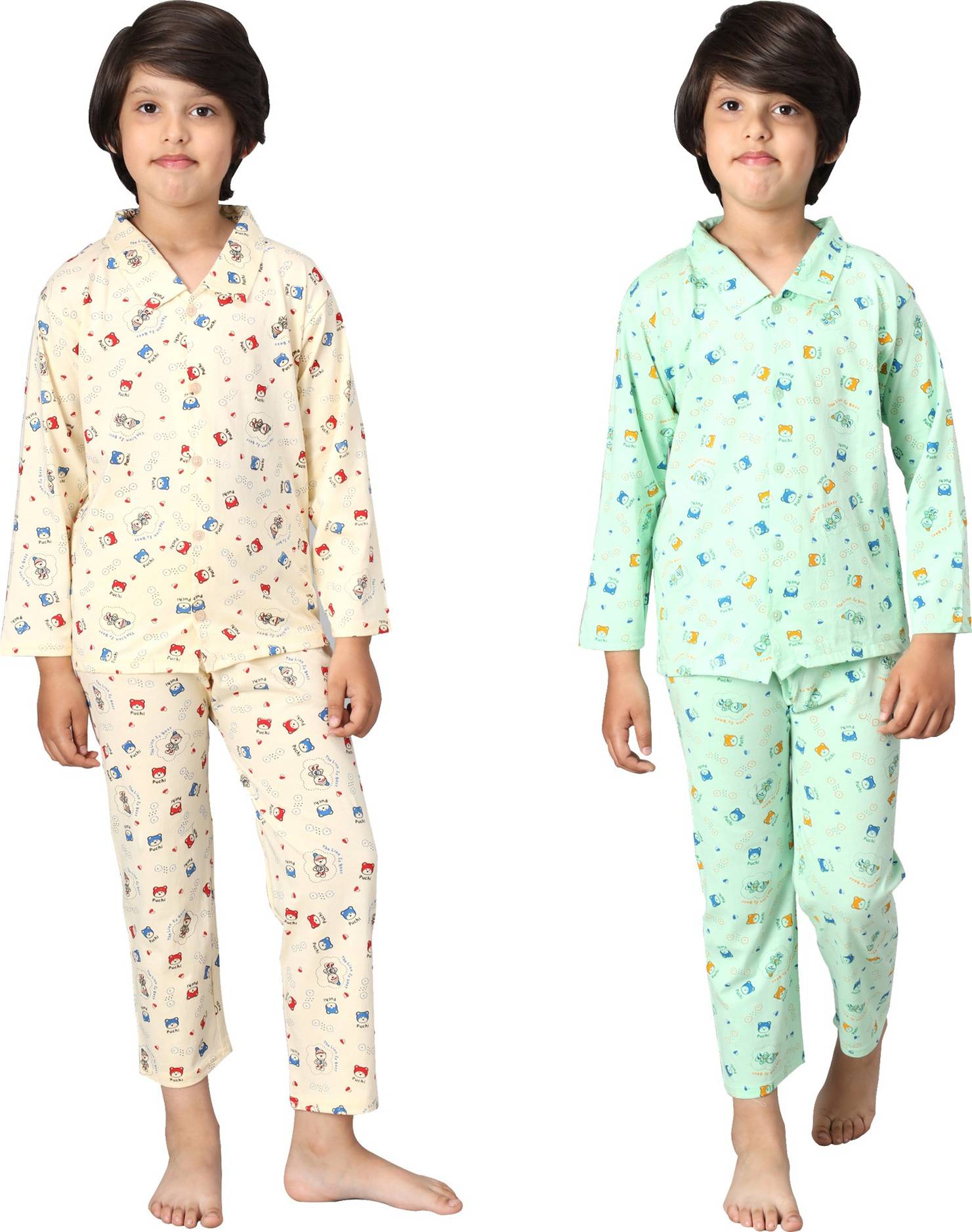 Jain Trader Kids Nightwear Baby Boys Printed Cotton Blend (Multicolor Pack of 2)