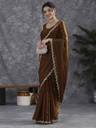JAINICA Solid/Plain Bollywood Tissue Saree (Mustard)