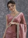 Solid/Plain Bollywood Tissue Saree (Pink)
