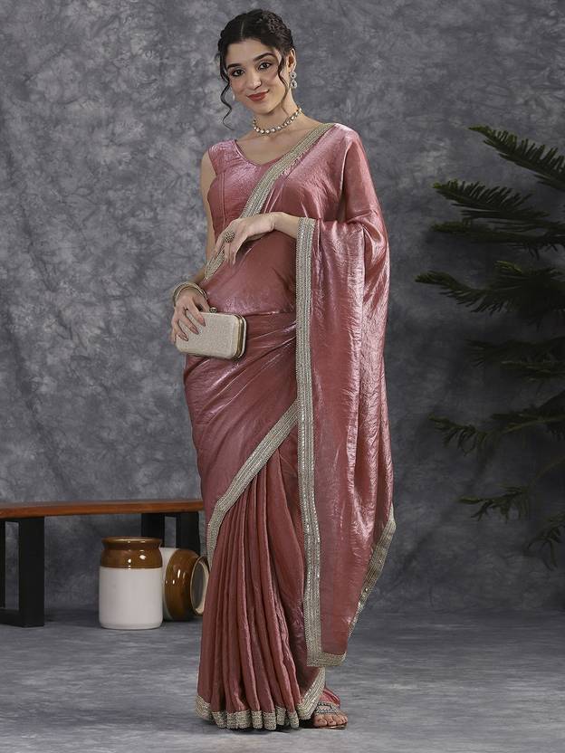 JAINICA Solid/Plain Bollywood Tissue Saree (Pink)