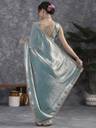 Solid/Plain Bollywood Tissue Saree (Light Blue)