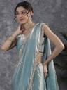 JAINICA Solid/Plain Bollywood Tissue Saree (Light Blue)