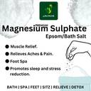 Bath Salt packs only the Premium Grade, 100% Pure and Unscented product. Epsom Salt has many applications including the following. Versatile Use: Suitable for full-body baths or foot soaks, catering to your personal relaxation preferences. Muscle Relaxation: Helps relax tense muscles and promote overall well-being, ideal for athletes or those with active lifestyles. Pain Relief: Alleviates discomfort from soreness, minor injuries, or everyday stress, promoting a sense of calm and comfort. Premium Quality: Packaged in a moisture-free, air-tight zipper to preserve freshness and potency, ensuring long-lasting efficacy.