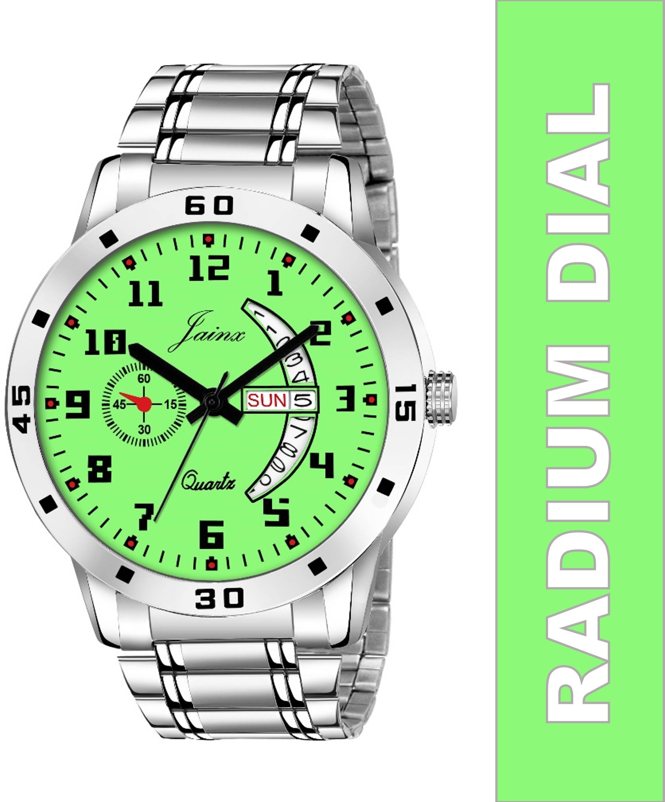 Stylish Day & Date Function Radium Dial Steel Chain