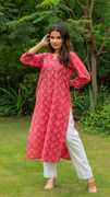 JAIPUR FASHION Women Printed A-line Kurta (Pink)