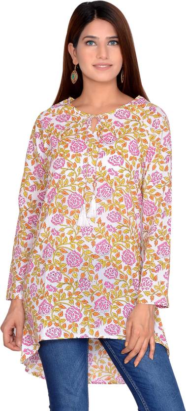 Short kurti for women on jeans | Jeans Top for women | tunic top for women cotton | women cotton top for jeans | Cotton short kurti for jeans | Tunic top under 600 | Above knee length kurti | kurtis for girls | Floral print short kurti on jeans | Regular sleeve top on jeans