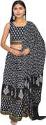 GOLDEN BORDER Stitched Lehenga Chaniya choli dress. SLEEVELESS SHORT Choli, Premium Liva certified Cotton Rayon Fabric with Duppatta