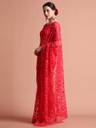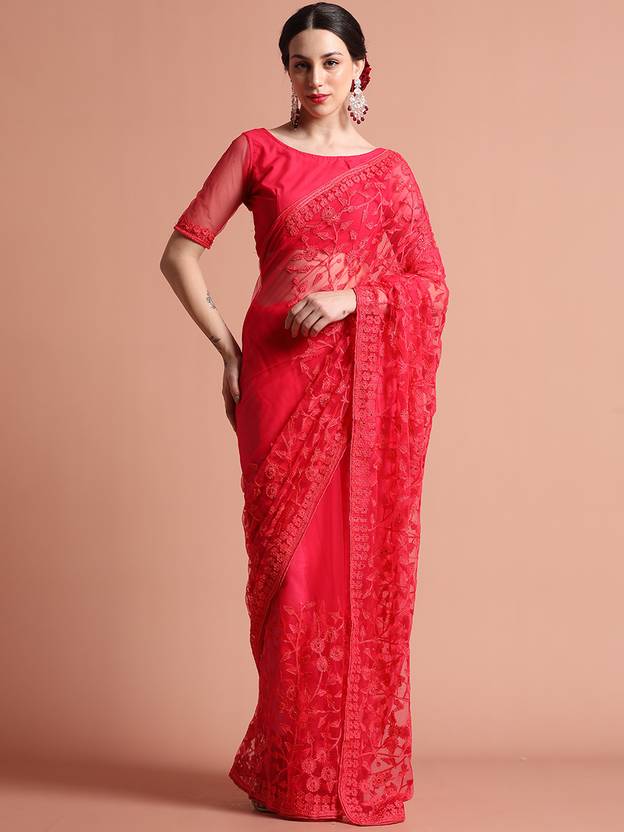 Carry a glamorous look in this Party Wear Floral Embroidered Net Saree. It has a charming color and floral thread embroidered details all over.