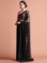 Carry a glamorous look in this Party Wear Floral Embroidered Net Saree. It has a charming color and floral thread embroidered details all over.