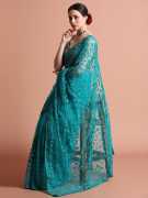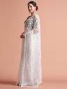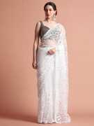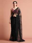 Carry a glamorous look in this Party Wear Floral Embroidered Net Saree. It has a charming color and floral thread embroidered details all over.