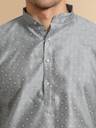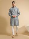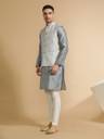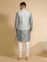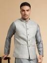 Fancy Grey Colour Jacquard Weaving Work Koti With Matching Weaving Work Kurta Of Grey Colour And Jacquard Silk Fabric Along With White Colour Cotton Blend Fabric Pajama For Bottom Wear Making This A Perfect Kurta Koti Set