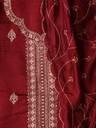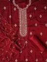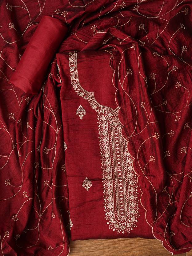 This Unstitched Embroidered Silk Blend Dress Material features detailed embroidery and includes a matching dupatta. The silk blend fabric offers a luxurious feel with an elegant finish