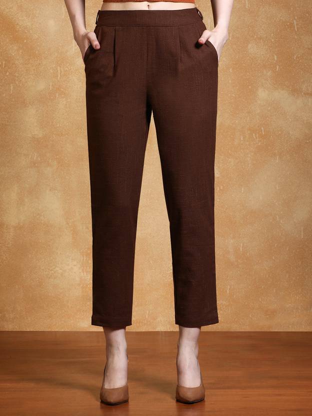 Jaipur Kurti presents formal as well as casual Brown Slub Cotton Trouser Pants , which goes well with both the tops as well as kurtas . And gives a smart & classy look .