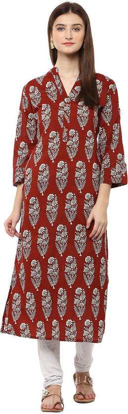 Look and feel beautiful in this uniquely designed kurta from Jaipur Kurti.Brown printed straight kurta, has a mandarin collar, three quarter roll up sleeve, straight hem,side slits,side pockets. For your next dinner party or family gathering, this brown piece pairs well with matching leggings and chic flats.