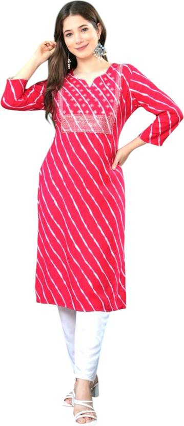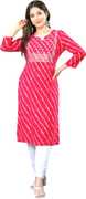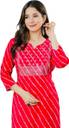 Add a touch of Rajasthani elegance to your wardrobe with this Leheriya kurta. Designed in a straight fit with diagonal Leheriya stripes and a beautifully embroidered yoke, this kurta blends traditional charm with modern style. Crafted from soft, breathable fabric, it ensures all-day comfort, making it ideal for daily wear, festive occasions, or office wear. The round neck, 3/4th sleeves, and side slits enhance both style and ease of movement.