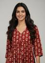 Thoughtfully arranged printed pattern of this women’s gown presents a balanced visual surface that supports a refined appearance. Moreover, with evenly distributed motifs, this gown maintains visual consistency, which helps it blend smoothly with accessories and footwear.