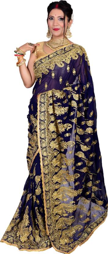 Embroidered Bollywood Georgette Saree (Dark Blue)