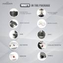 This flour mill comes with a brush, four stainless steel mesh, a filter, and wheels to fulfil your different needs.