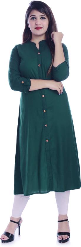 Women Solid Cotton Rayon Frontslit Kurta (Green)