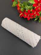 Featuring a detailed chevron-style embroidery, this blouse fabric presents a clean, structured look across its surface. The consistent zigzag pattern adds a sense of rhythm, bringing depth without overwhelming the design. Furthermore, the embroidery runs across the fabric in a balanced layout, making it suitable for both simple and statement blouses. In addition, the subtle texture enhances visual interest without interrupting stitch lines.