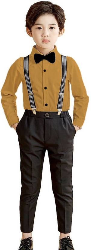 Beautiful Dungaree pattern full pair for kids boys and girls both. It's shirt, dungaree and bow tie set in too soft and shiny fabrics in sober pattern.